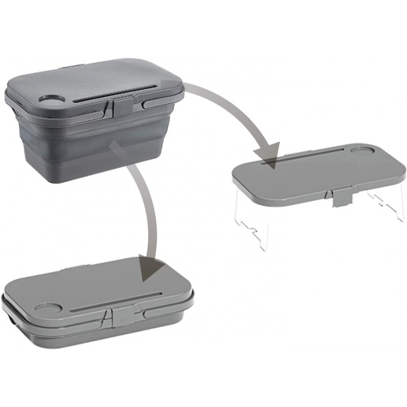 Pokrywka kosza piknikowego może być używana jako mały stół i taca na kolana. Konstrukcja uchwytu na kubek i stojaka na tablet na stole jest idealna do podróży. Kosz piknikowy może być używany jako pudełko do przechowywania, zlew, wanna, kosz na lód, umywalka i wiadro.