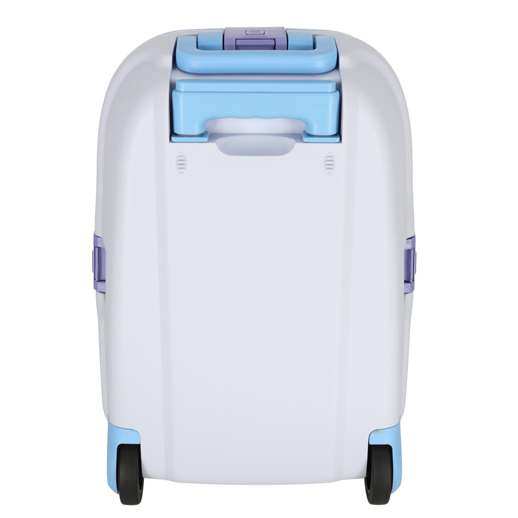 Niebieska walizka dziecięca na kołkach – idealna na każdą podróż. Wyposażona w dwa kółka oraz wysuwaną rączkę. Zamykana na trzy zatrzaski. W zestawie naklejki umożlwiające podpisanie walizki. Tworzywo: plastik. Wymiary: 43 cm x 30 cm x 19 cm.