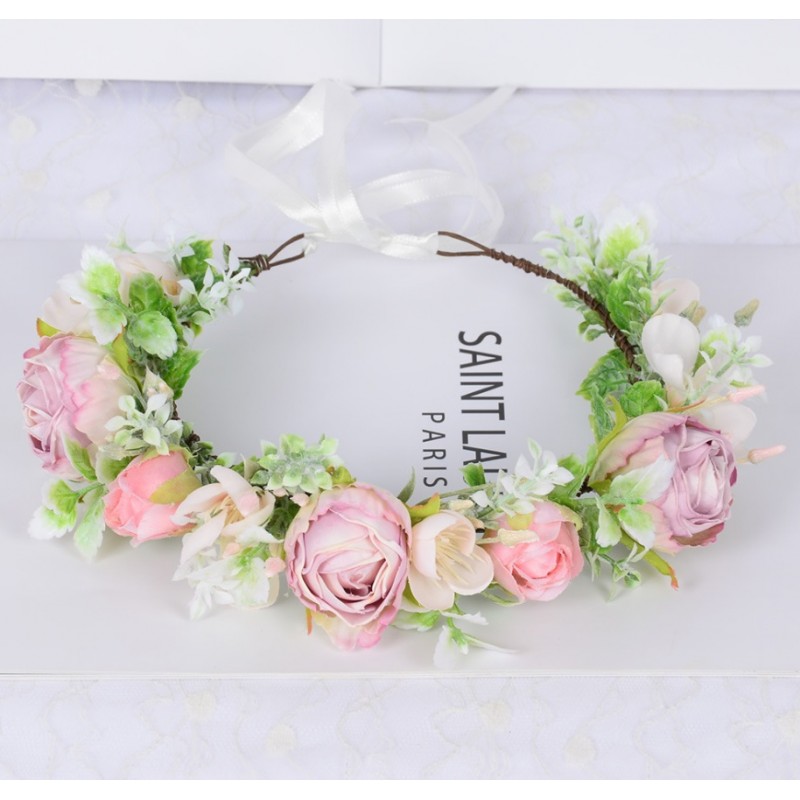 Romantyczny wianek na głowę z wysokiej jakości kwiatów sztucznych.