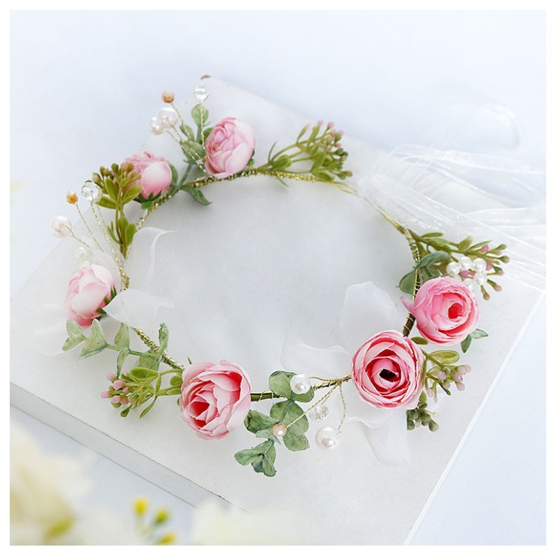 Romantyczny wianek na głowę z wysokiej jakości kwiatów sztucznych.
