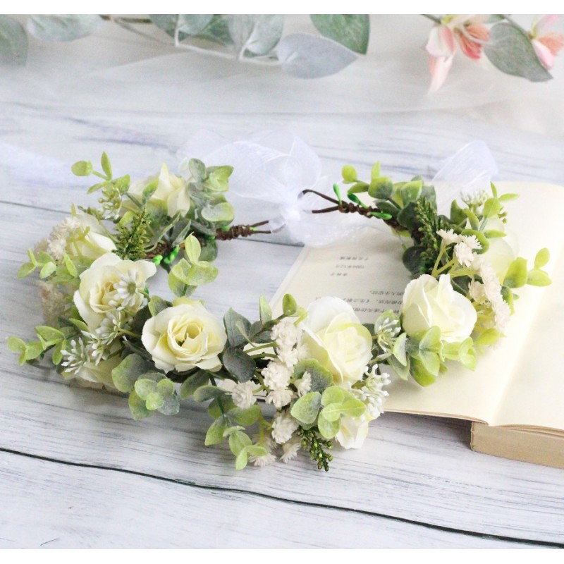Romantyczny wianek na głowę z wysokiej jakości kwiatów sztucznych.