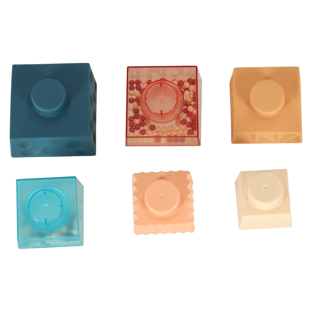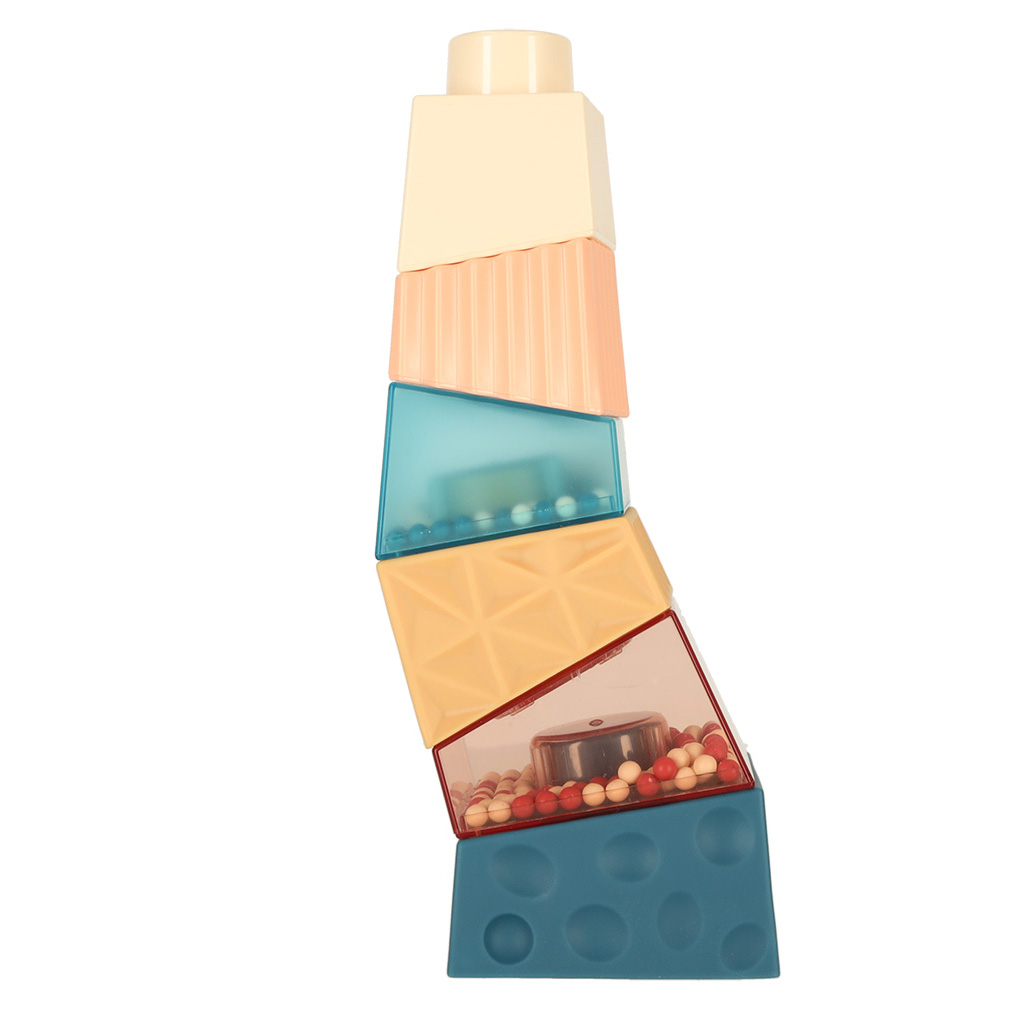 Edukacyjne klocki z różnymi sensorycznymi elementami, które można układać w dowolny sposób tworząc wieżę. Zabawka zapewnia mnóstwo frajdy, a przy tym jest doskonałym treningiem zdolności manualnych. Tworzywo: plastik. Przykładowa wieża: 8x8x14,5cm.