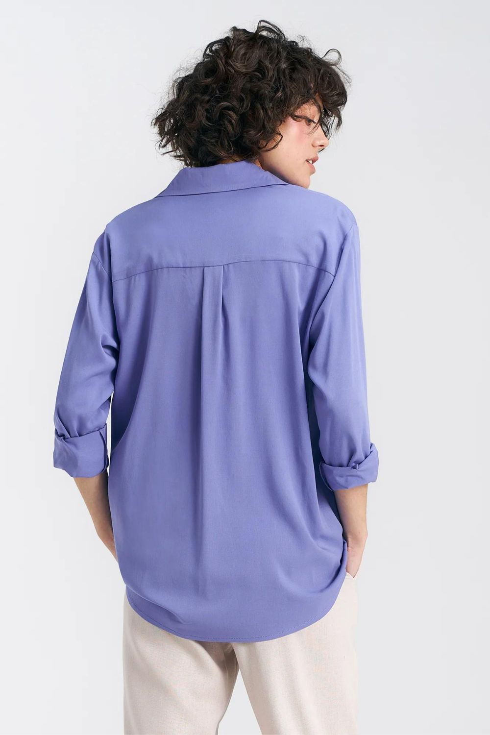 Koszula o luźnym kroju oversize to idealna propozycja dla kobiet, które cenią swobodę ruchów i modny, nieco niestaranny look. Wykonana z lekkiej wiskozy, ta koszula zapewnia nie tylko wygodę noszenia, ale także subtelny połysk, który dodaje jej elegancji. Klasyczny kołnierzyk nadaje koszuli formalności, tworząc harmonijny kontrast z luźnym krojem. Długi rękaw zakończony mankietem dodaje struktury i stylowego wykończenia, nadając koszuli uniwersalnego charakteru, który świetnie sprawdzi się zarówno w codziennych, jak i bardziej formalnych stylizacjach. Zapięcie na guziki z przodu umożliwia łatwe zakładanie i zdejmowanie koszuli, jednocześnie pozostając praktycznym elementem w codziennym użytkowaniu. Na plecach koszula posiada karczek z zakładką pośrodku, co nadaje jej subtelnego detalu i łagodzi oversizeowy kształt, tworząc równowagę pomiędzy swobodą a delikatnym wykończeniem. Ta koszula to doskonała propozycja dla kobiet, które pragną podkreślić swój indywidualny styl poprzez luźny, modny fason, jednocześnie nie rezygnując z elegancji i klasyki. To idealny wybór na różne okazje, pozwalając na kreatywne zestawienia i wygodę w jednym.