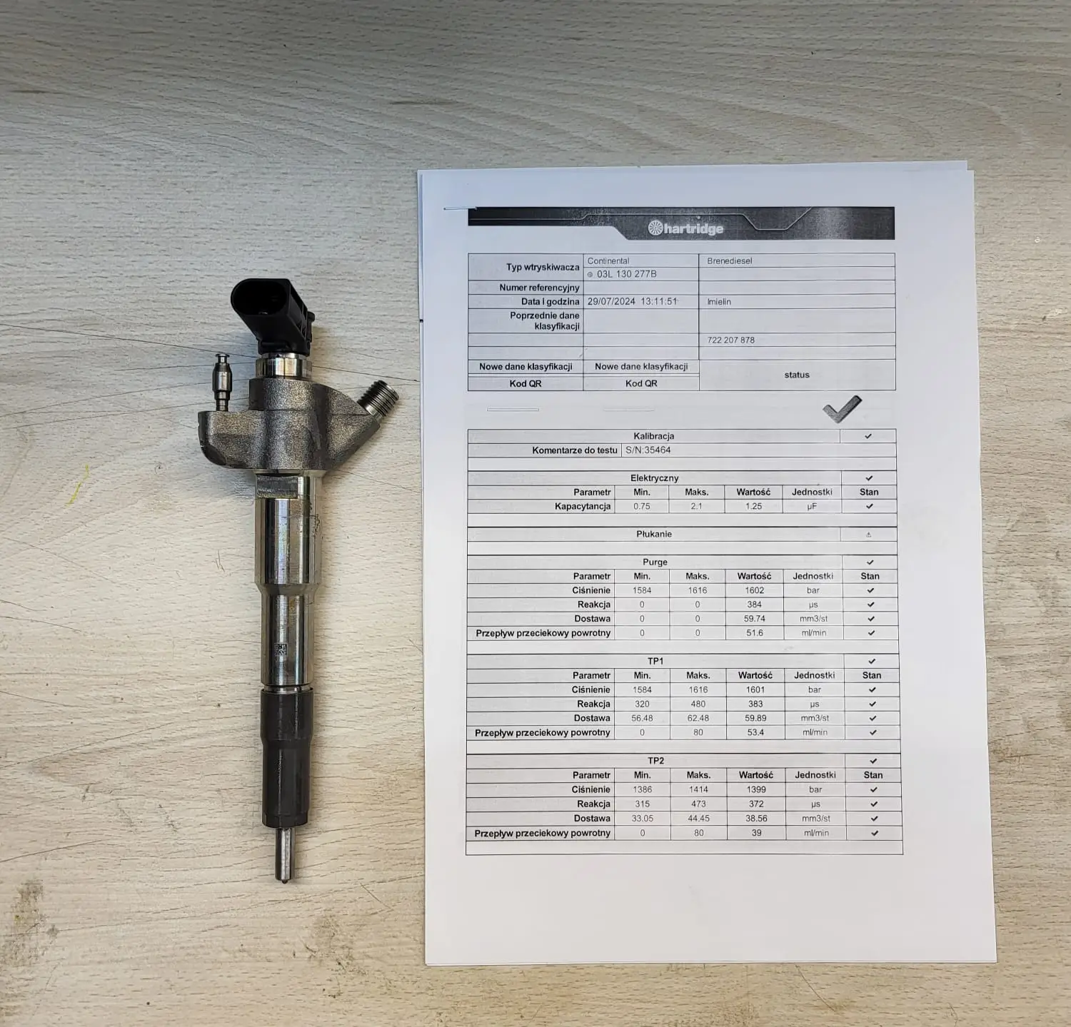 Wydruk parametrów z maszyny testującej
