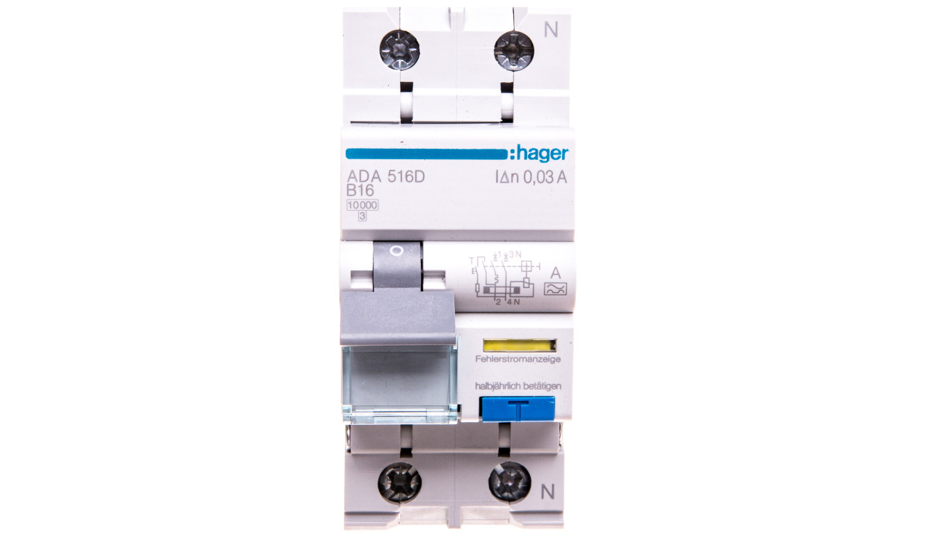 Wyłącznik różnicowo-nadprądowy RCBO 2P B16A 0,03A Typ A ADA516D
