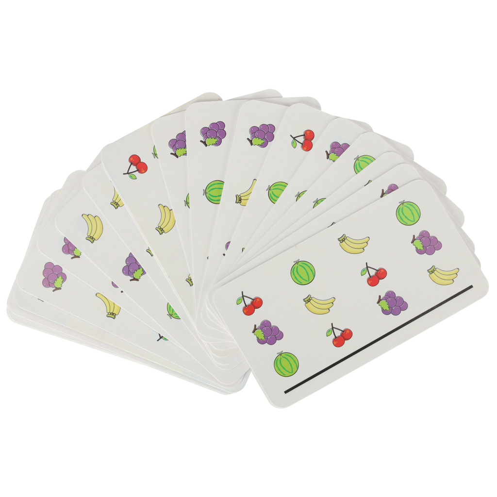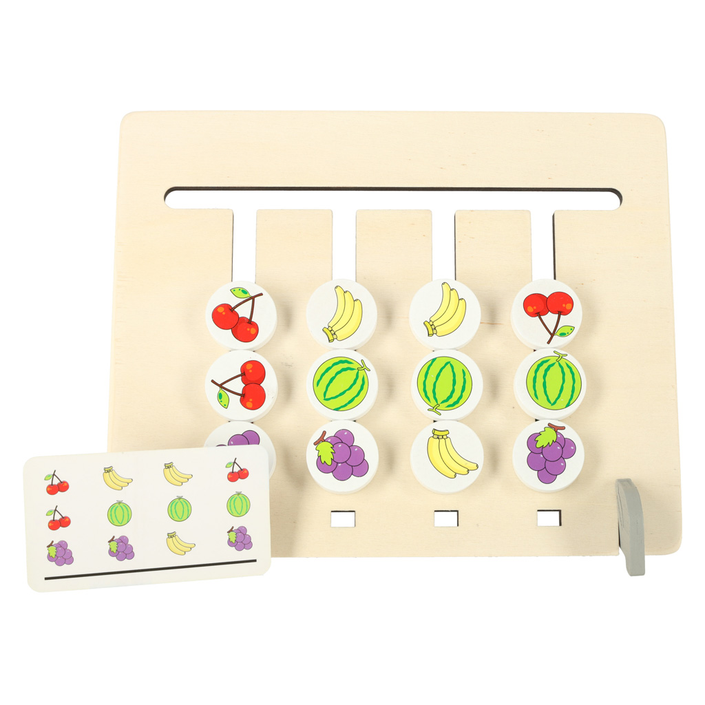 Rewelacyjna zabawka edukacyjna wykonana z drewna. Zabawa polega na ułożeniu kombinacji owoców lub kolorów, według wzorów przedstawionych na kartach pomocniczych. Wymiary opakowania: 23 cm x 18,5 cm x 3 cm