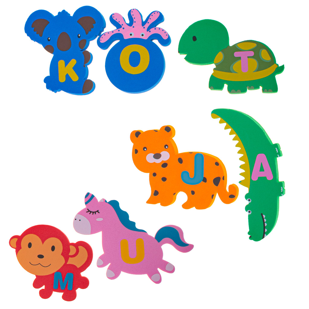 Mięciutkie puzzle piankowe do kąpieli. Każdy puzzel to inne zwierzątko i litera – a to oznacza, że zestaw jest doskonałą okazją do nauki liter oraz nazw zwierząt. Sprawiają, że każda kąpiel to fantastyczna przygoda. Wym. przykładowego puzzla: 11x7x1 cm.