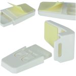 Narożna blokada szuflady. Zabezpieczy szufladę przed dostępem dziecka. Blokada składa się z dwóch części, które należy połączyć w literę L. Każda część posiada samoprzylepną taśmę. Wykonana z plastiku w kolorze brązowym. Wymiary: po 7,5cm.