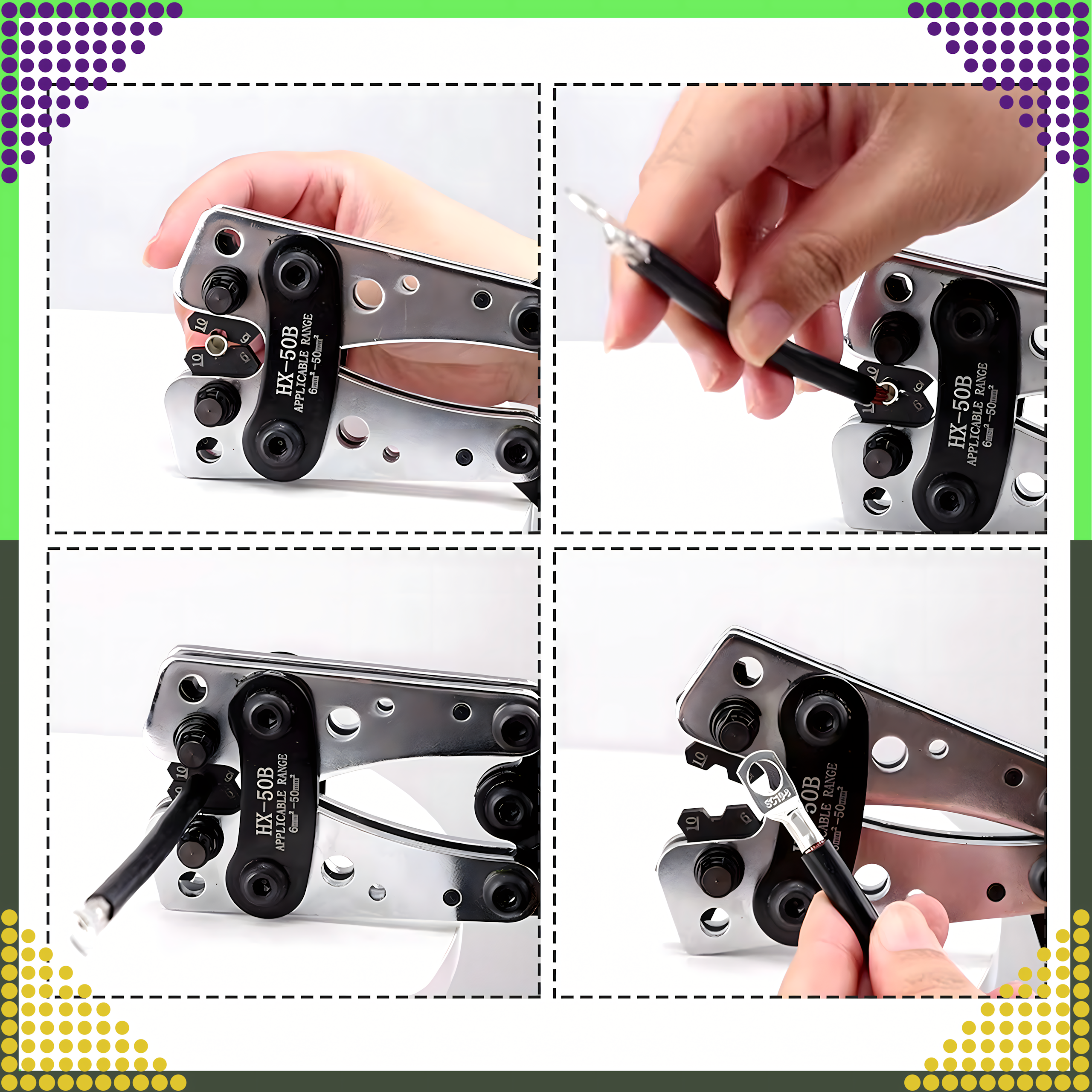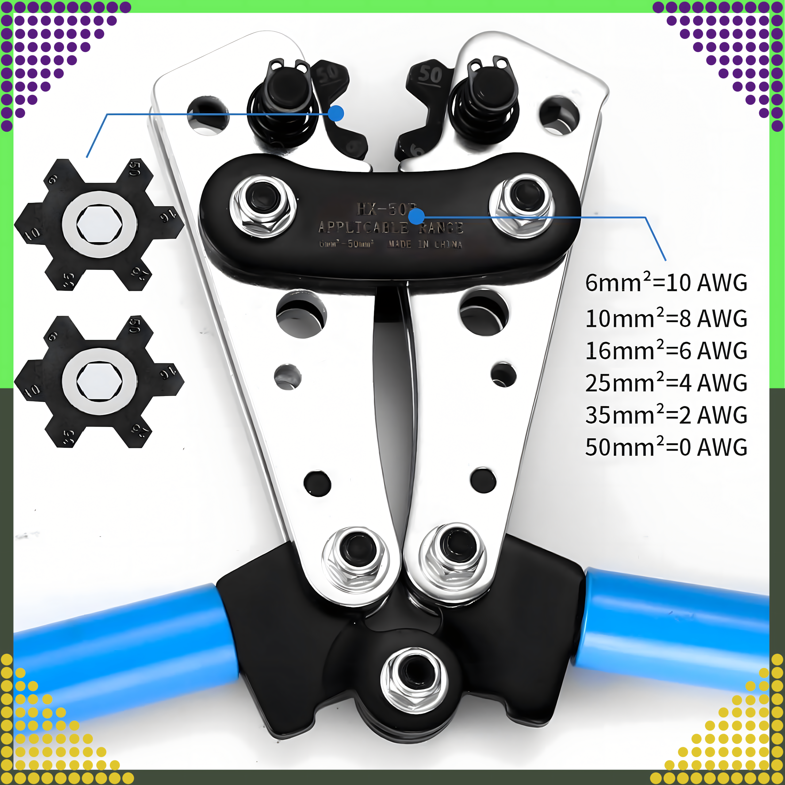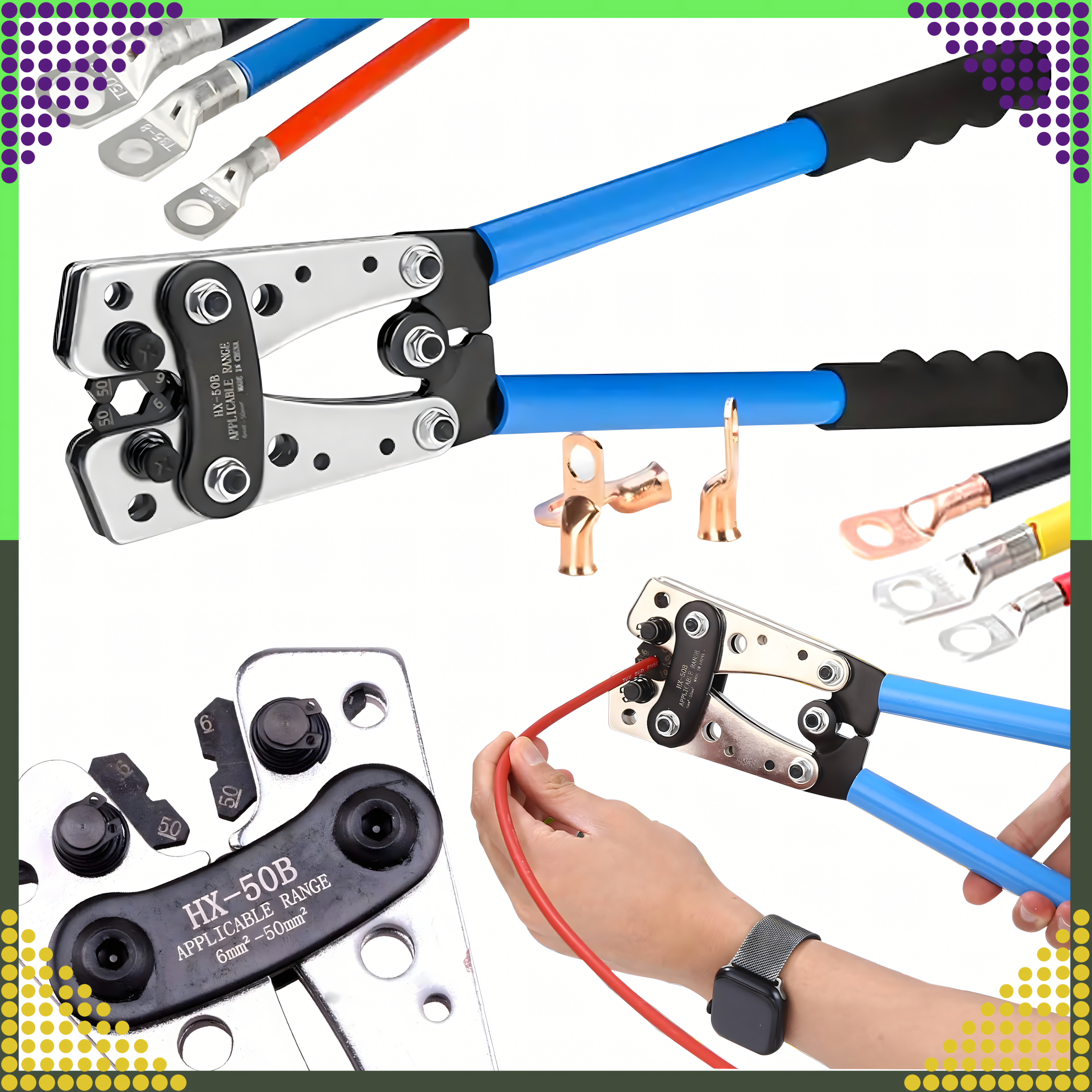 ⚙️🔧🛠️ ZACISKARKA DO TULEJEK KOŃCÓWEK KABLI KONEKTORÓW PRZEWODÓW PRASKA 6-50mm AWG⚙️🔧🛠️