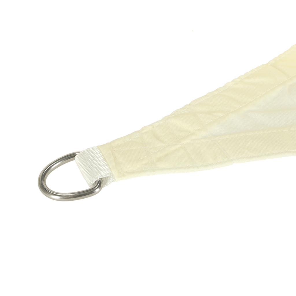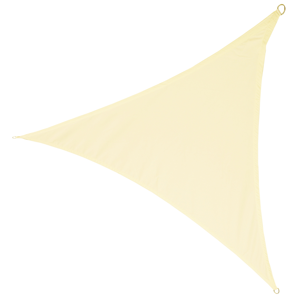 Trójkątny żagiel przeciwsłoneczny 4×4×4 m z tkaniny PU Oxford 120 g/m2 chroni przed słońcem, UV i lekkim deszczem. Beżowy kolor, wodoodporność 400 mm H2O, filtr UV, wzmocnione brzegi i 3 stalowe uchwyty D-ring zapewniają trwałość i wygodę.