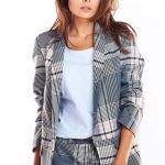 Stylowy żakiet o miejskim kroju. Uszyty z tkaniny w modną kratę. bardzo miłej w dotyku. Świetnie wygląda w komplecie ze spodniami A492. Będzie pasować nie tylko do eleganckich, ale także codziennych stylizacji. Żakiet jest na podszewce. Zaprojektowano i uszyto w Polsce.