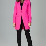 Przedłużany żakiet zapinany na kolorowy guzik z długim rękawem. Pięknie wyeksponowany dekolt, z tyłu rozcięcie dodaje komfortu noszenia, po bokach kieszenie. Uszyty ze świetnego materiału a dodatkowo podszewka ma kolor żakietu. To typowy „must have” tego sezonu.