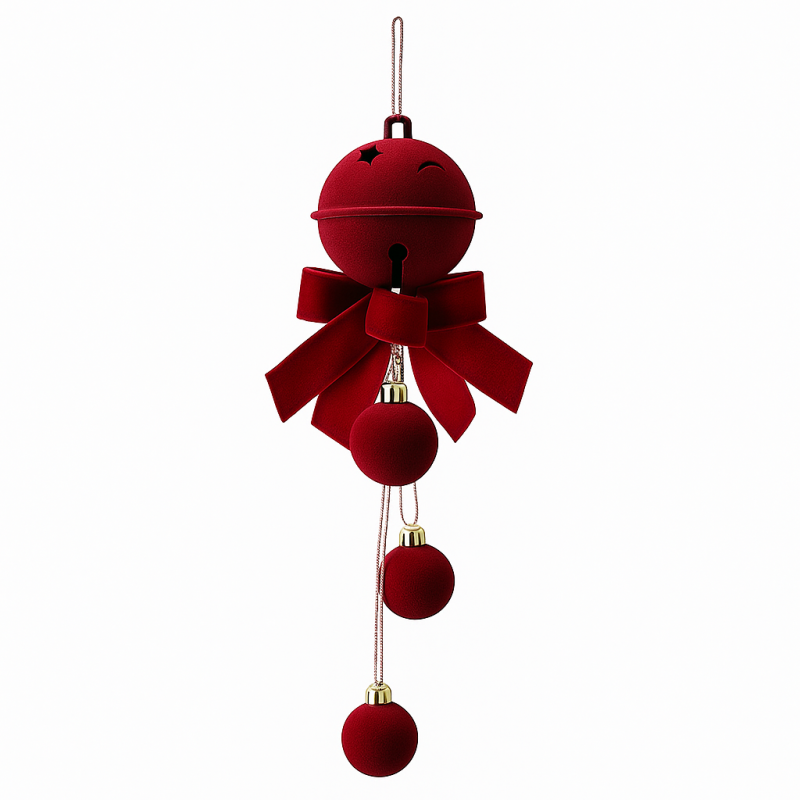 Zawieszka na choinkę, dzwoneczek z kokardą i bombkami, 1 sztuka 34cm WOZ49
