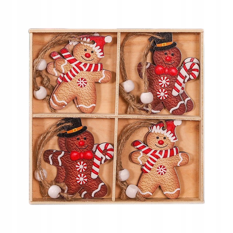 Zawieszki choinkowe 12szt PIERNICZKI drewniane w opakowaniu BSN46