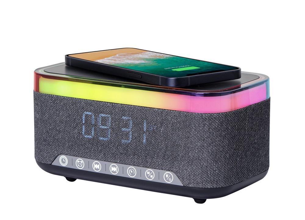 Zegar cyfrowy z funkcją budzika oraz bezprzewodowego ładowania Gembird DAC-SPKBT-QC15-BK