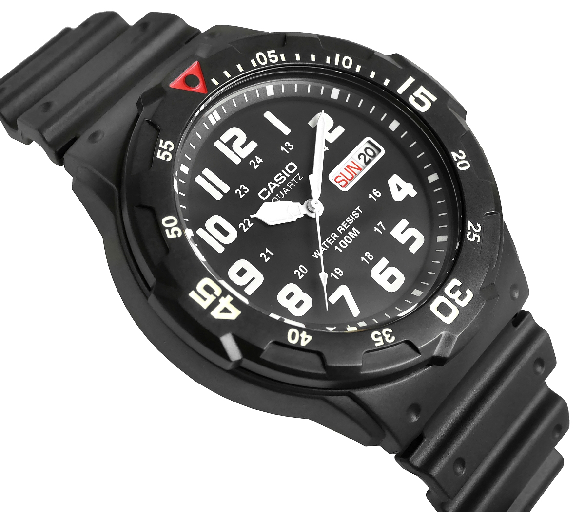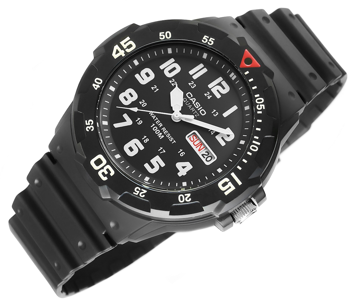 Casio MRW-200 to zegarek dla mężczyzny, który żyje na pełnych obrotach. Solidna konstrukcja, sportowy design i obrotowy bezel nadają mu charakter prawdziwego outdoorowego towarzysza. Dzięki wodoodporności 100M nie straszne mu wodne przygody, a fluorescencyjne wskazówki gwarantują czytelność nawet po zmroku. Duża tarcza i funkcjonalny datownik sprawiają, że masz wszystko pod kontrolą – bez względu na to, czy jesteś w pracy, na treningu czy na szlaku. Lekki, wygodny i gotowy na każde wyzwanie – waży zaledwie 39 g!