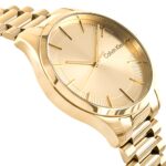 Tarcza zdobiona wyraźnym, przestrzennym logo „CK” przyciąga wzrok, grając światłem niczym luksusowa biżuteria. Subtelnie wypolerowane detale kontrastują z matowym tłem, tworząc efekt głębi i lekkości zarazem. Wysokiej jakości materiały, dopracowane z zegarmistrzowską precyzją detale i perfekcyjnie skomponowana kolorystyka – zegarek Calvin Klein nosi się jak biżuterię, a każdy rzut oka na nadgarstek staje się estetycznym przeżyciem. Całość dopełniają: logo zapięciu bransolety oraz „CK” na koronce zegarka.