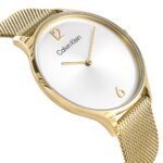 Delikatne wskazówki i tarcza, która miękko odbija światło – wszystko razem tworzy kompozycję, od której trudno oderwać wzrok. Wysokiej jakości materiały, dopracowane z zegarmistrzowską precyzją detale i perfekcyjnie skomponowana kolorystyka – zegarek Calvin Klein nosi się jak biżuterię, a każdy rzut oka na nadgarstek staje się estetycznym przeżyciem. Całość dopełniają: logo na tarczy, zapięciu bransolety oraz CK na koronce zegarka.