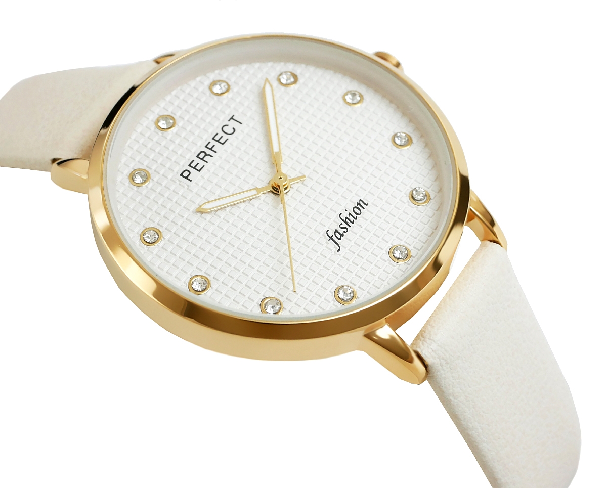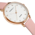 Damski zegarek Perfect wyróżnia się minimalistycznym designem, z klasycznym wskazaniem godzin i minut. To proste, a zarazem eleganckie rozwiązanie, które nadaje subtelny szyk każdej kobiecej dłoni, podkreślając jej delikatność i styl.