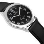 Czarny pasek, wykończony czarną nitką, podkreśla nowoczesny styl zegarka, sprawiając, że idealnie komponuje się z różnorodnymi stylizacjami. To zegarek dla kobiety, która ceni sobie elegancję w prostocie i pragnie wyrazić swoją indywidualność w każdym detalu. Z tym dodatkiem każda chwila nabiera wyjątkowego blasku.