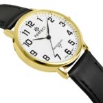 Ten zegarek to idealne połączenie luksusu z ciepłem i naturalnością. Złota koperta subtelnie otula białą tarczę, dodając elegancji i blasku. Czarne indeksy oraz wskazówki tworzą efektowny kontrast, zapewniając doskonałą czytelność. Czarni sekundnik dodaje dynamiki, płynnie poruszając się w rytmie czasu.