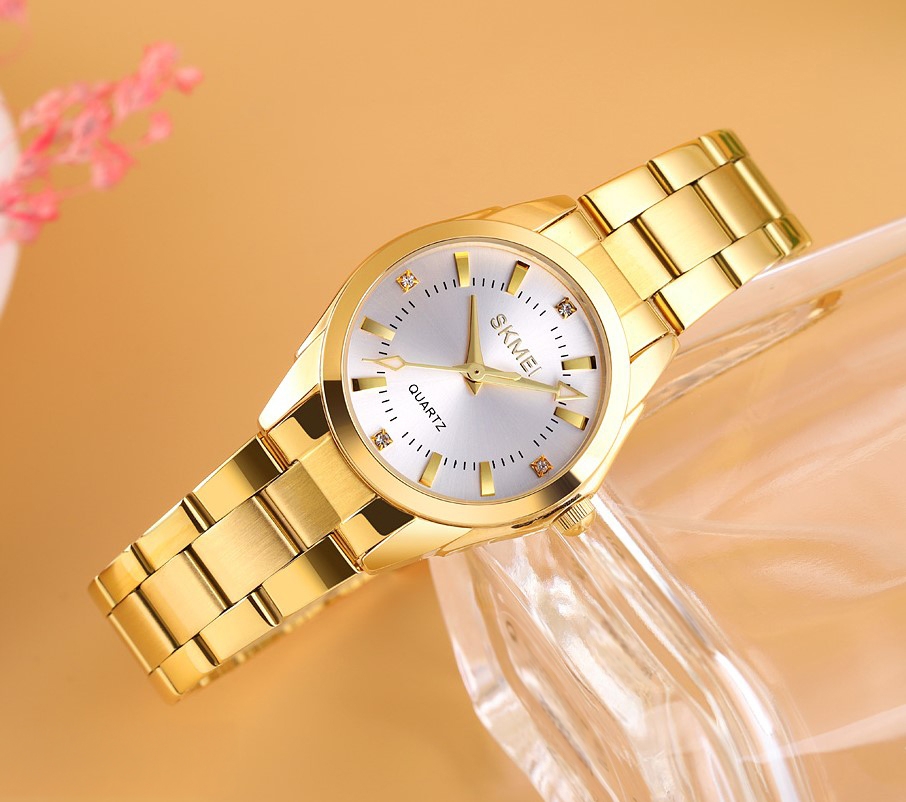 Zegarek Skmei 1620 w złotej wersji to prawdziwa ozdoba, która dodaje blasku każdej stylizacji. Jego ciepły, złoty kolor i subtelne kryształki na tarczy przyciągają spojrzenia, sprawiając, że poczujesz się wyjątkowo elegancko. To idealny dodatek dla kobiet, które kochają luksusowy, a jednocześnie delikatny styl, podkreślający ich wyjątkowy charakter.