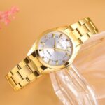 Jej ogniwa zostały zaprojektowane tak, by delikatnie otulały kobiecy nadgarstek, zapewniając wygodę noszenia przez cały dzień. Dzięki przemyślanej konstrukcji bransoleta dopasowuje się do naturalnych kształtów dłoni, sprawiając, że zegarek staje się niemal nieodczuwalny. Srebrzysta stal nierdzewna subtelnie odbija światło, dodając każdemu ruchowi odrobiny blasku. Jest trwała i odporna na codzienne zarysowania, co sprawia, że nie tylko pięknie wygląda, ale także wiernie towarzyszy w każdej sytuacji, podkreślając Twój styl niezależnie od okazji.