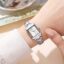 Ten model jest jak dotyk elegancji, który subtelnie oplata nadgarstek i dodaje każdej chwili wyjątkowego blasku. Jego srebrzysta bransoleta, delikatna jak powiew wiosennego wiatru, przyciąga wzrok subtelnym połyskiem, nadając dłoniom wyrafinowanej lekkości. Prostokątna koperta, jak małe dzieło sztuki, harmonijnie komponuje się z elegancką, metaliczną tarczą, na której skrywają się subtelne zdobienia. Minimalistyczne detale – subtelne indeksy i połyskujące kamienie – przyciągają wzrok niczym biżuteryjny sekret, który nosisz tylko dla siebie.