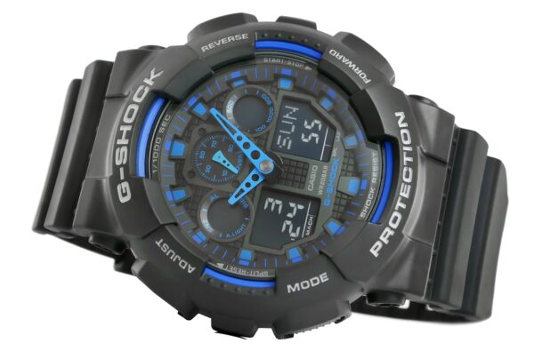 Zegarek Męski CASIO G-SHOCK GA-100-1A2ER wyposażony jest w: Stoper, Alarmx5, Budzik. Data.. Podświetlenie – do podświetlenia tego zegarka użyto diody LED, która stonowanym i jasnym światłem wystarczająco naświetli nam tarczę. Czas światowy, odczyt różnych stref czasowych. Kalendarz automatyczny z zaprogramowanymi datami do 2099r., Zegarek sam dostosowuje daty w przypadku krótszych miesięcy. Timer 1/10 – sec. Zegarek wyposażony jest w funkcję liczącą czas do tyłu, możliwość ustawienia od 1 sec do 24 godzin.