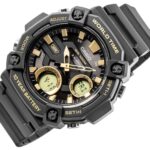 Model Casio AEQ-110W z wyrazistą metaliczną tarczą 3D i elementami w kolorze miedziano-złotym sprawdza się zarówno w codziennym biegu po mieście, jak i w terenie – podczas wypadu za miasto czy weekendowego survivalu. Ten model nie potrzebuje taryfy ulgowej – został stworzony dla tych, którzy oczekują, że sprzęt będzie działać zawsze i wszędzie. 10 lat spokoju na jednej baterii, wodoszczelność 100 metrów (10 BAR), a do tego funkcje, które naprawdę się przydają: czas światowy w 30 miastach (29 stref czasowych), stoper 1/100 sekundy do zadań specjalnych, 3 alarmy dzienne, żeby nic Ci nie umknęło, i Telememo 30 – byś miał ważne kontakty pod ręką, nawet bez dostępu do telefonu. To zegarek, który nie tylko wygląda konkretnie – on po prostu jest konkretny.