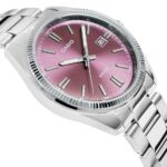 Wykonana z wysokiej jakości stali nierdzewnej, o podwójnym rodzaju wykończenia: matowym środku oraz szczotkowanych brzegach nadaje zegarkowi unikalny wygląd. Stal nierdzewna jest materiałem odpornym na uszkodzenia mechaniczne, co sprawia, że bransoleta dobrze znosi codzienne użytkowanie i zachowuje swój estetyczny wygląd przez długi czas. Zegarek jest wyposażony w specjalne zapięcie typu „slide clasp”, które pozwala na regulację długości bransolety bez potrzeby usuwania ogniw. Bransoleta posiada solidne, zatrzaskowe zapięcie, które zapobiega przypadkowemu rozpięciu zegarka, co jest szczególnie ważne w sytuacjach aktywnych lub intensywniejszych ruchach ręki.