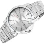 Męski model z kolekcji CASIO wyposażony w klasyczną 40-milimetrową kopertę ze stali nierdzewnej, czytelną tarczę z wyrazistymi indeksami godzinowymi oraz dodatkową skalą 24-godzinną, która ułatwia orientację w czasie. Funkcjonalny datownik umieszczony przy godzinie trzeciej umożliwia szybki podgląd aktualnego dnia miesiąca, a wodoodporność na poziomie WR gwarantuje bezpieczeństwo użytkowania w codziennych sytuacjach. Dzięki bransolecie ze stali szlachetnej o matowym wykończeniu zegarek zyskuje elegancki charakter, który pasuje zarówno do garnituru, jak i do luźniejszego, miejskiego stylu. Mechanizm kwarcowy zapewnia precyzję i niezawodność, z której słynie marka Casio.