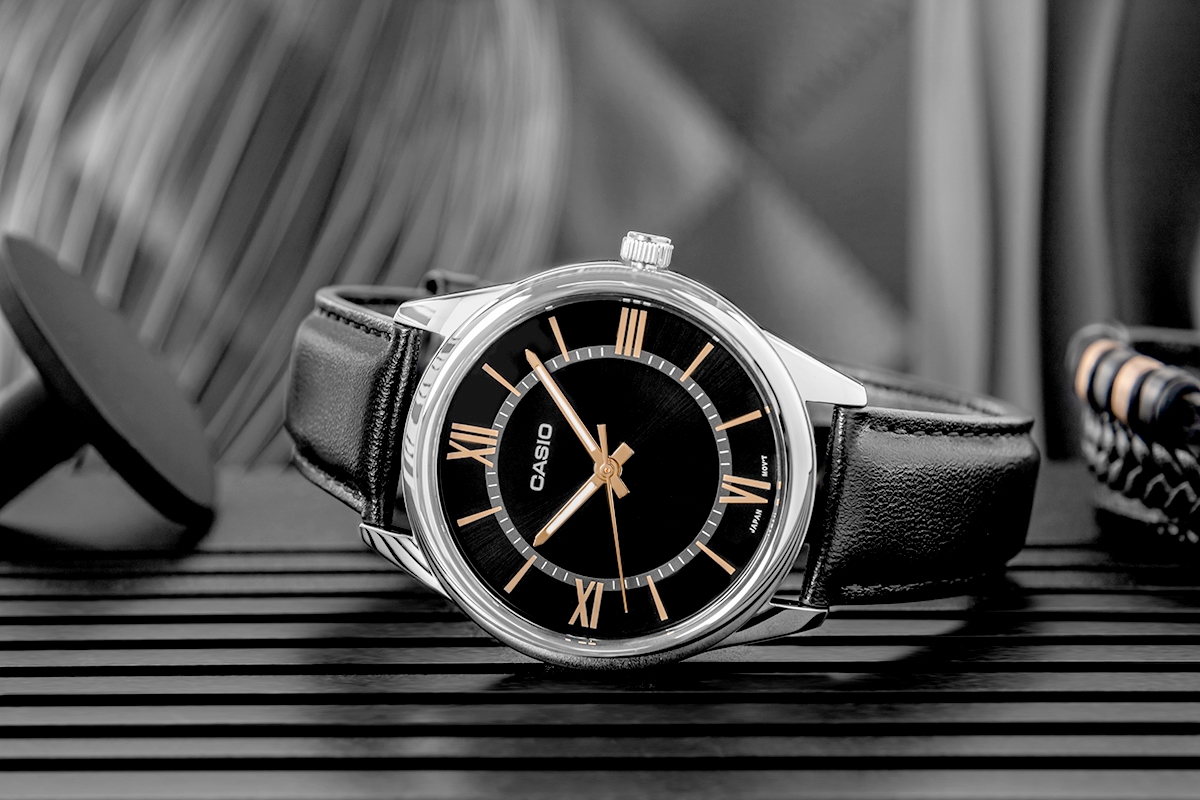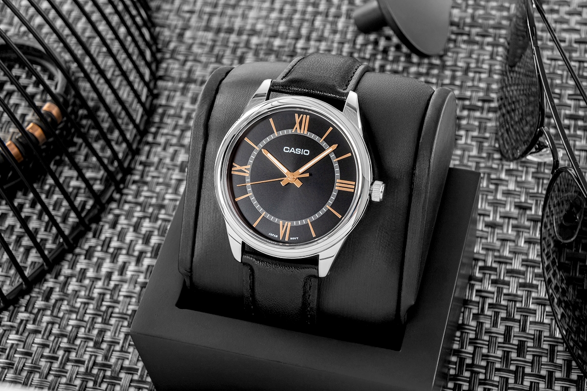 Wyróżnij się stylem zarówno w pracy, jak i podczas czasu wolnego dzięki linii eleganckich zegarków Casio MTP-V005. To Klasyczny zegarek analogowy CASIO zaprojektowany w oparciu o ponadczasowy wygląd wskazówek godzinowej, minutowej i sekundowej. Prosty, czytelny design tarczy sprawia, że łatwo jest być punktualnym. Zegarek wyróżnia się elegancką czarną tarczą, która nadaje mu stylowy wygląd. Jasne indeksy i delikatne wskazówki wyraźnie odcinają się na ciemnym tle, zapewniając doskonałą czytelność. Uzupełnieniem jest klasyczny czarny pasek o skórzanej fakturze, dodający całości wyrafinowanego charakteru. Prosty design, wskazówki z fluorescencją i odporność na zachlapania sprawiają, że to idealny wybór na co dzień.