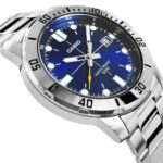 Nie każdy zegarek ma to „coś”. Casio MTP-VD01D-2BVUDF to model, który mówi więcej, niż mogłoby się wydawać. To nie tylko narzędzie do odmierzania czasu – to manifest stylu, pewności siebie i męskiej elegancji. Kiedy zakładasz ten zegarek, czujesz chłód stali nierdzewnej, która idealnie dopasowuje się do nadgarstka. 43 mm koperta – w sam raz, by pokazać charakter, ale nie przesadzić. Niebieska tarcza przyciąga uwagę, odbija światło i zmienia odcień zależnie od kąta patrzenia – subtelna, ale wyrazista. Do tego duże indeksy i wskazówki, które pozwalają błyskawicznie rzucić okiem na godzinę. To zegarek dla tych, którzy lubią prostą, ale mocną formę. Zero zbędnych dodatków – tylko to, co najważniejsze.