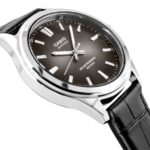 Wykorzystaj moc słońca z analogowym zegarkiem CASIO Solar. Dzięki zasilaniu solarnemu nie musisz martwić się o baterie – panel słoneczny ładuje zegarek światłem, zapewniając mu nawet 4 miesiące pracy po pełnym naładowaniu. Tarcza w odcieniu głębokiej czerni przypomina rozchodzące się światło słoneczne, nadając całości charakteru i głębi. Szkło szafirowe z powłoką antyrefleksyjną nie tylko chroni przed zarysowaniami, ale też wydobywa głębię koloru tarczy, zachowując jej czytelność nawet w ostrym świetle. Wodoszczelność na poziomie 50 metrów zapewnia ochronę podczas codziennego użytkowania – bez obaw o kontakt z wodą, deszczem czy myciem rąk. To dopracowany w każdym detalu model, który łączy nowoczesną technologię z klasyczną, męską elegancją.