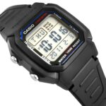 Zegarek Męski Casio W-800H to niezawodność w czytelniej formie – nowoczesny zegarek cyfrowy z dużym wyświetlaczem, który umożliwia szybki i łatwy odczyt godziny. Wyposażony w wodoszczelność do 100 metrów, baterię o żywotności 10 lat, podświetlenie LED oraz inne funkcje. Zegarek oferuje wszystkie najważniejsze informacje – godzina, data i dzień tygodnia – w dużej czytelnej formie. Dzięki funkcjom takim jak stoper 1/100 sekundy, podwójny czas i alarm z drzemką, świetnie sprawdza się zarówno podczas treningów, jak i w podróży. Wytrzymałe podświetlenie LED z efektem poświaty zapewnia dobrą widoczność nawet po zmroku. Solidna konstrukcja zapewnia trwałość w miejskiej dżungli i podczas outdoorowych przygód.