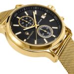 Złota koperta, będąca symbolem prestiżu, od razu przyciąga uwagę, emanując niepowtarzalnym blaskiem. Czarna tarcza stanowi zmysłowe tło, które podkreśla kontrast i nadaje charakteru. Indeksy i wskazówki w odcieniu złota, wzbogacone fluorescencyjnym akcentem, oferują nie tylko estetykę, ale także praktyczność, zapewniając doskonałą widoczność w każdych warunkach. Złoty sekundnik porusza się z gracją, niczym silnik Maserati, dodając zegarkowi dynamiki i sportowego ducha. Bransoleta w złotym odcieniu doskonale dopełnia całość, oferując komfort i styl, które są niezbędne w codziennym życiu.