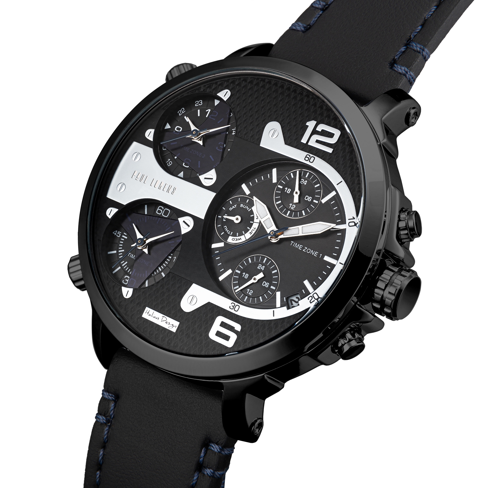 Na tarczy zegarka znajdują się oznaczenia rozbudowanego wskazania daty – dzień miesiąca, dzień tygodnia i czas w systemie 24godzinnym. Chronografy nie tylko wzbogacają funkcjonalność, ale także znacząco zwiększają prestiż tego modelu. Chronograf to jeden z najbardziej pożądanych elementów w zegarkach premium, a jego obecność świadczy o skomplikowanej mechanice i precyzji wykonania.