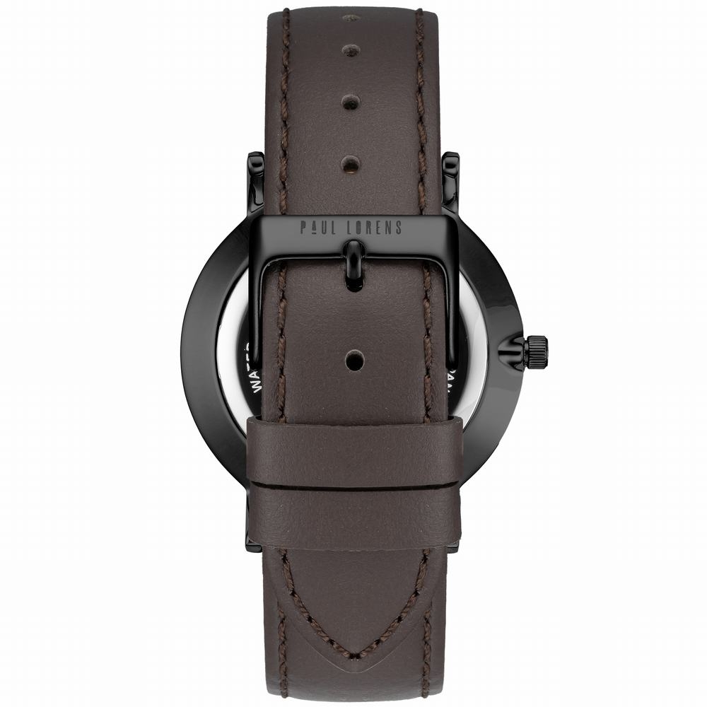 Wykonany z wysokogatunkowej, naturalnej skóry, zachwyca swoją miękkością i precyzją wykonania już przy pierwszym kontakcie. To nie tylko stylowy element, ale także niezawodny towarzysz na co dzień – doskonale układa się na nadgarstku, zapewniając wygodę przez cały dzień. Skóra ta z czasem nabiera jeszcze większego charakteru, pięknie się starzejąc i nadając zegarkowi niepowtarzalny wygląd. Dzięki naturalnym właściwościom skóry, pasek „oddycha”, co sprawia, że noszenie zegarka Paul Lorens na skórzanym pasku jest wyjątkowo przyjemne i komfortowe. Całości dopełnia zapięcie ozdobione logo Paul Lorens – znak jakości i prestiżu, który przyciąga spojrzenia i podkreśla wyjątkowy charakter tego dodatku.