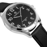 Czarny pasek, starannie wykończony czarną nitką, dodaje nowoczesnego akcentu, idealnie współgrając z całością. To zegarek dla mężczyzny, który ceni sobie klasykę w nowoczesnym wydaniu. Z jego pomocą każda chwila staje się wyjątkowa, a czas płynie z elegancją i stylem.