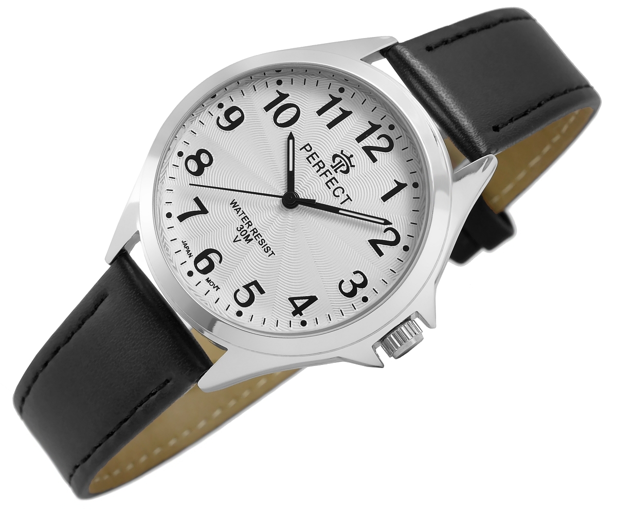 Męski zegarek Perfect wyróżnia się minimalistycznym designem, z klasycznym wskazaniem godzin i minut oraz sekund. To proste, a zarazem eleganckie rozwiązanie, które dodaje męskiej dłoni wyjątkowego szyku, ale także podkreśla jej charakter i klasę.