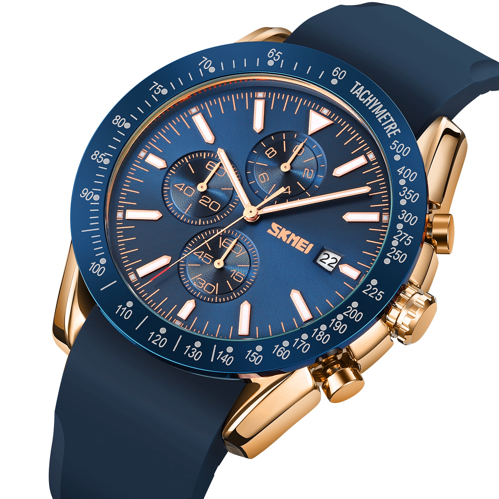 Zegarek Skmei 9253 w wersji na silikonowym pasku nawiązuje do estetyki ekskluzywnych modeli sportowych marek, takich jak TAG Heuer Carrera czy Rolex Daytona. Jego elegancki wygląd, podkreślony wyrazistym bezlem i tarczą z subtarczami emanuje profesjonalnym, sportowym charakterem. Teraz możesz mieć ten luksusowy, wyrazisty styl na swoim nadgarstku, nie rezygnując z wygody i lekkości silikonowego paska.