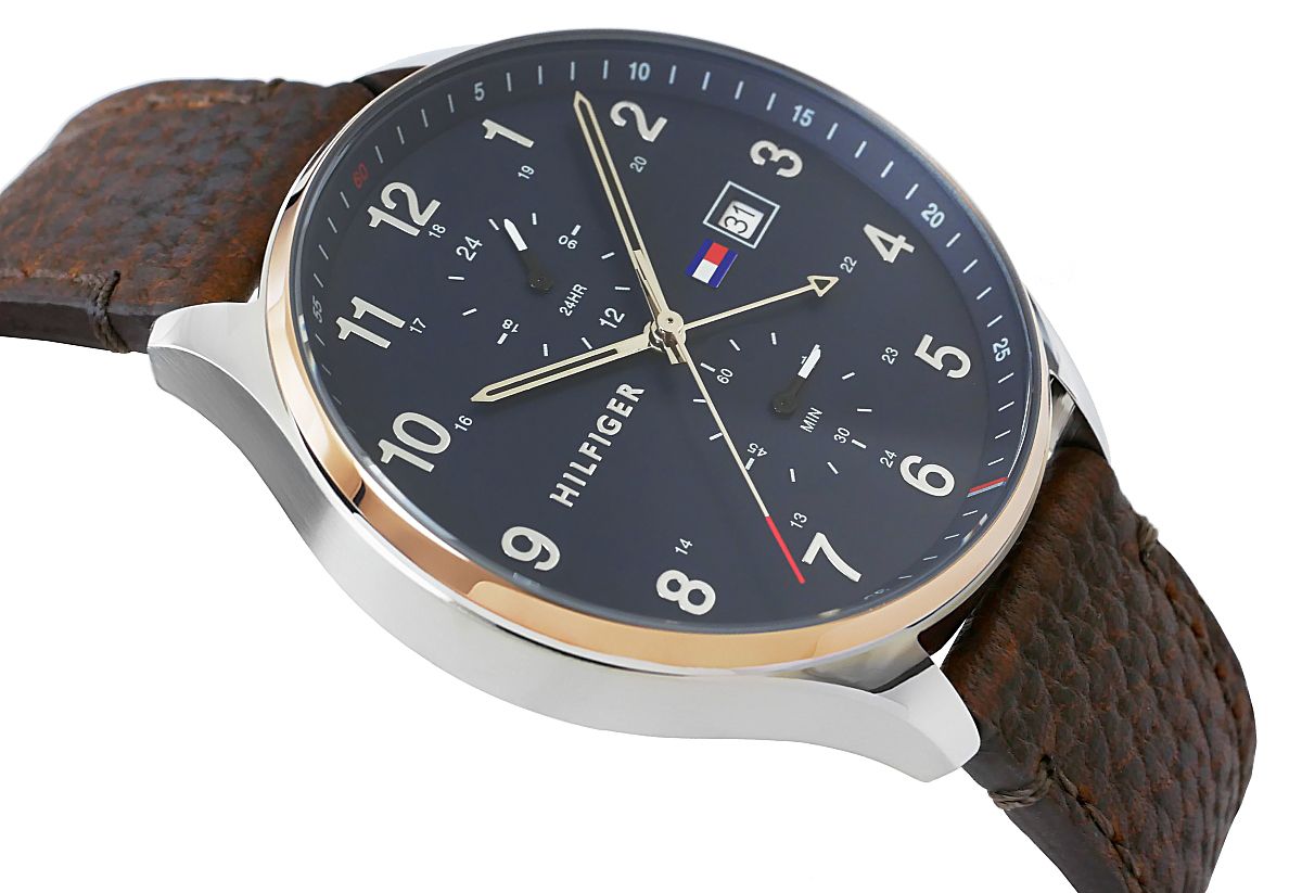 Zegarek Męski Tommy Hilfiger West 1791712 wyposażony jest w działające chronografy: czasu dobowego 12/24h- wyświetlanie godziny z uwzględnieniem całej doby umożliwia rozróżnienie godzin przed i popołudniowych, minut oraz datownikiem dni miesiąca