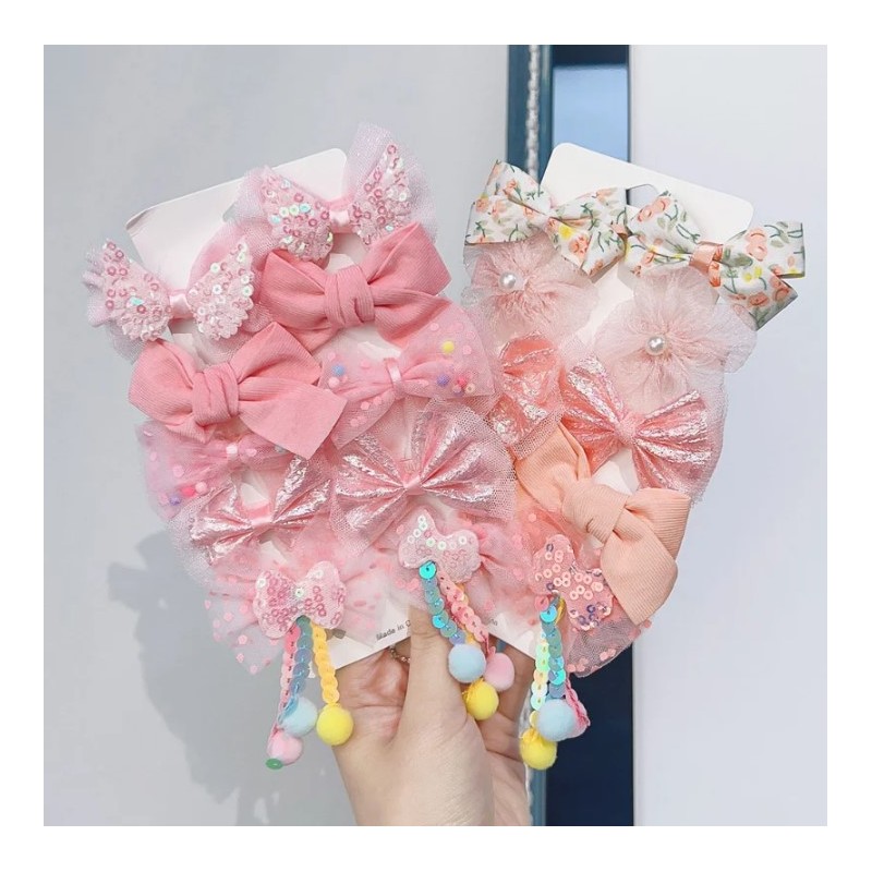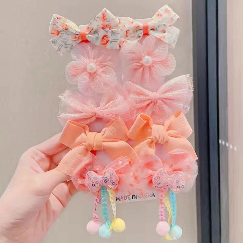 Zestaw 10w1 spinek wsuwek do włosów tiulowe KOKARDY cekiny SP302