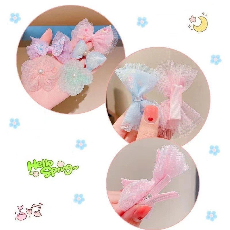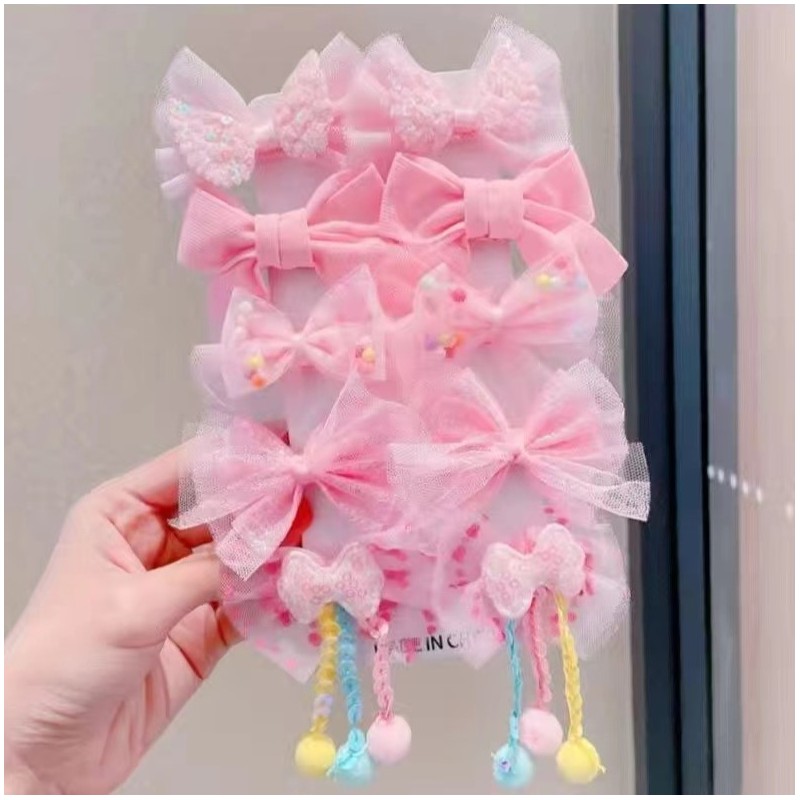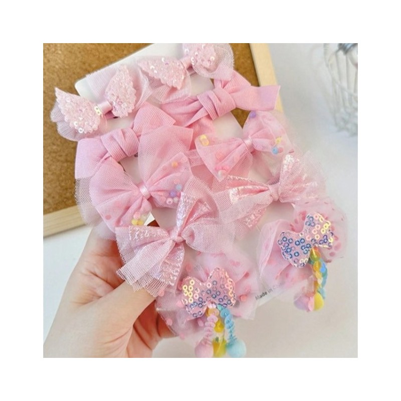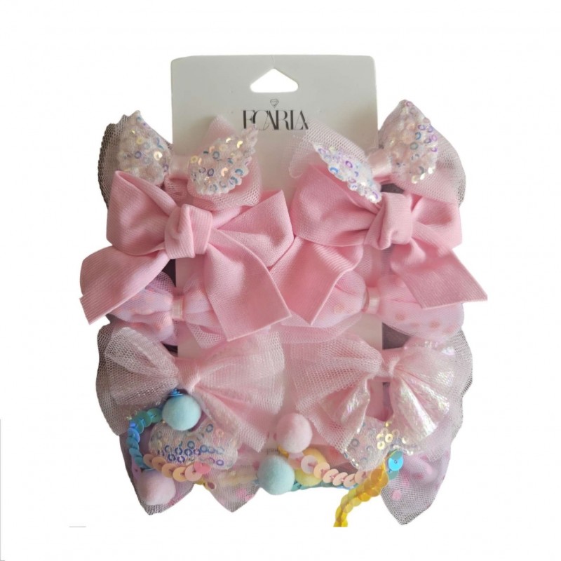 Zestaw 10w1 spinek wsuwek do włosów tiulowe KOKARDY pompony SP301