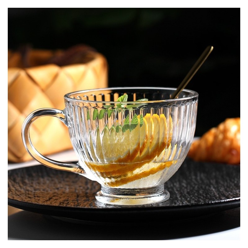 Zestaw 6szt. filiżanek szklanek ryflowanych dużych 380ml SZK150ZESTAW6