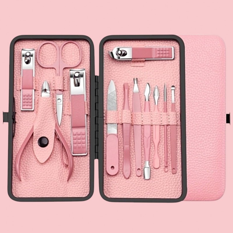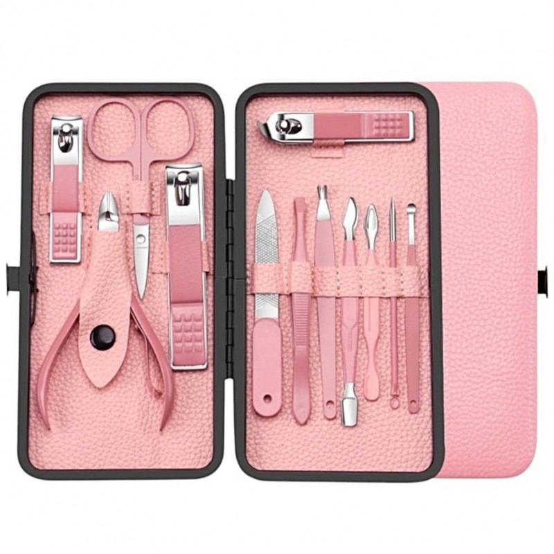 Zestaw akcesoriów do manicure, pedicure w etui różowe 12w1 AK20