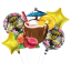 Zestaw balonów ALOHA – 5 szt.: duży balon drink (81,2 cm), 2× „Happy Birthday” (45,7 cm) i 2× złote gwiazdki (45,7 cm). Idealna tropikalna dekoracja na urodziny i letnie imprezy!