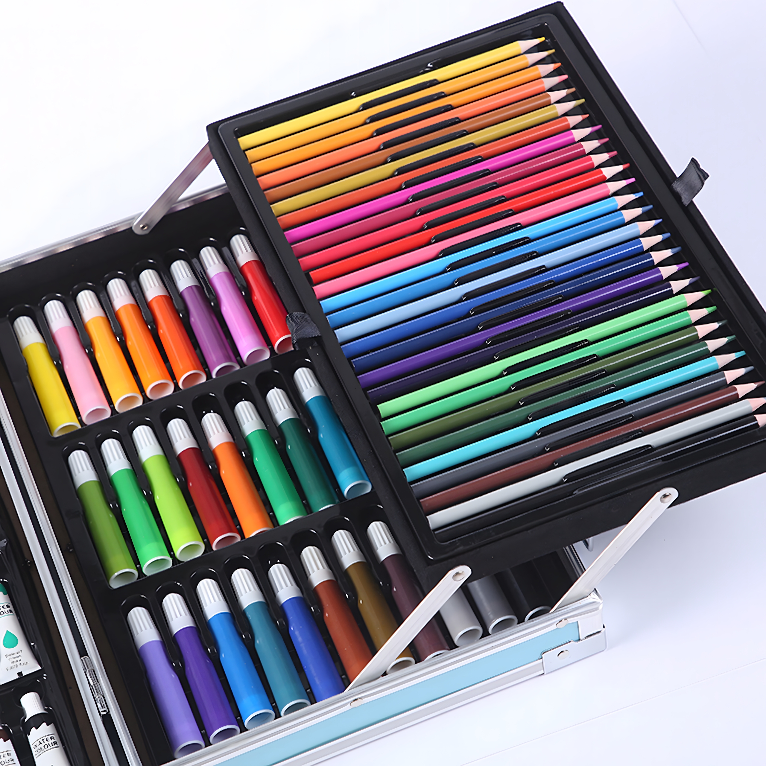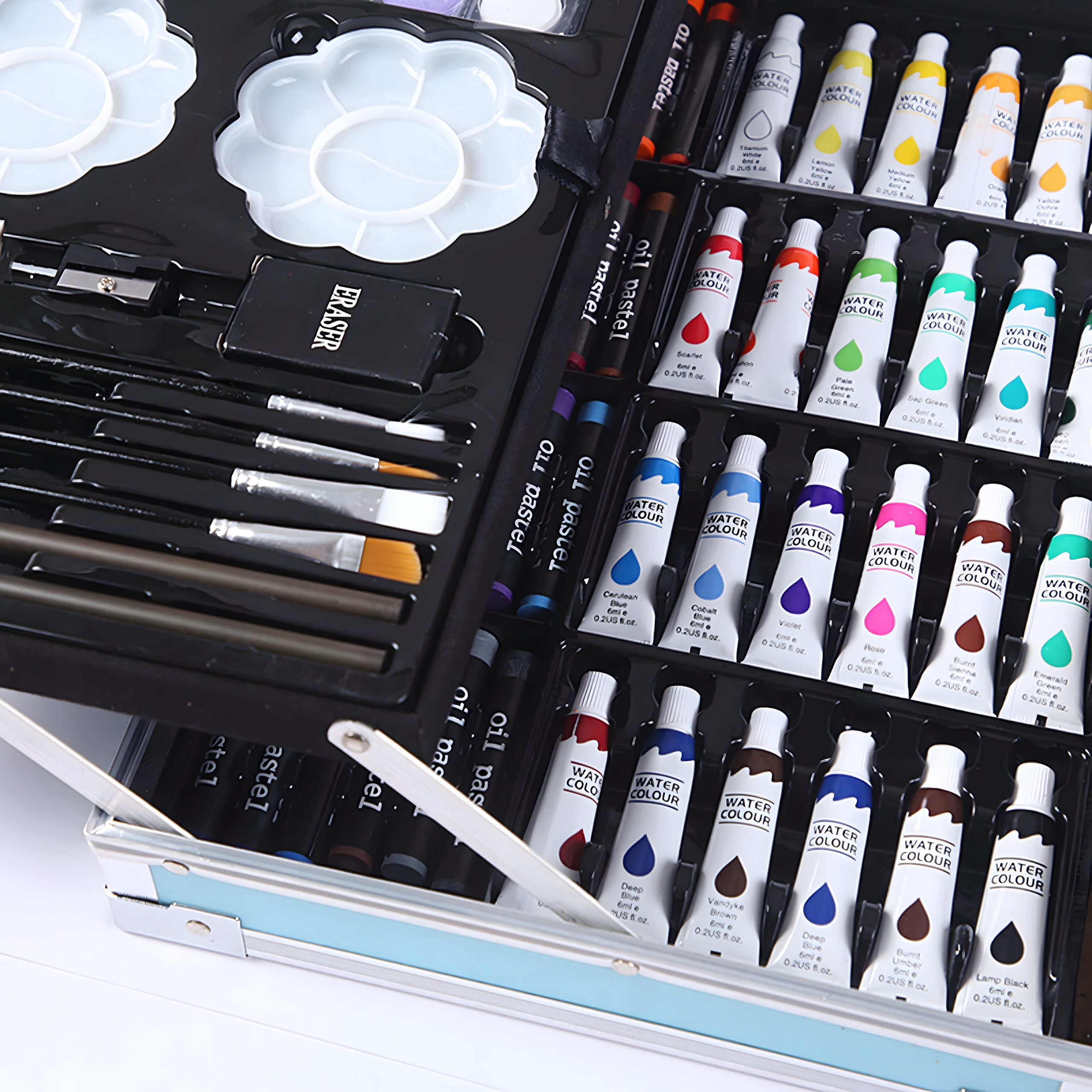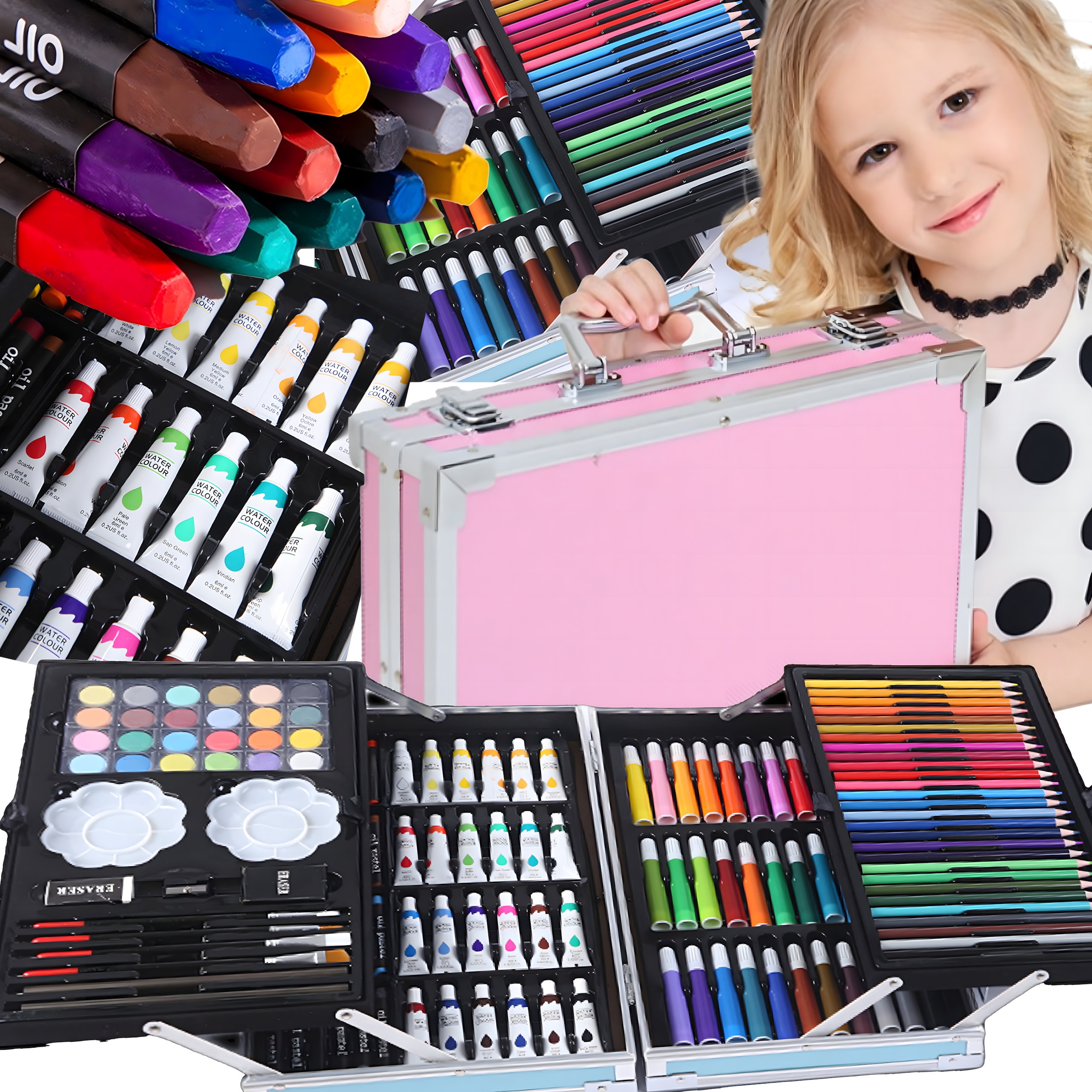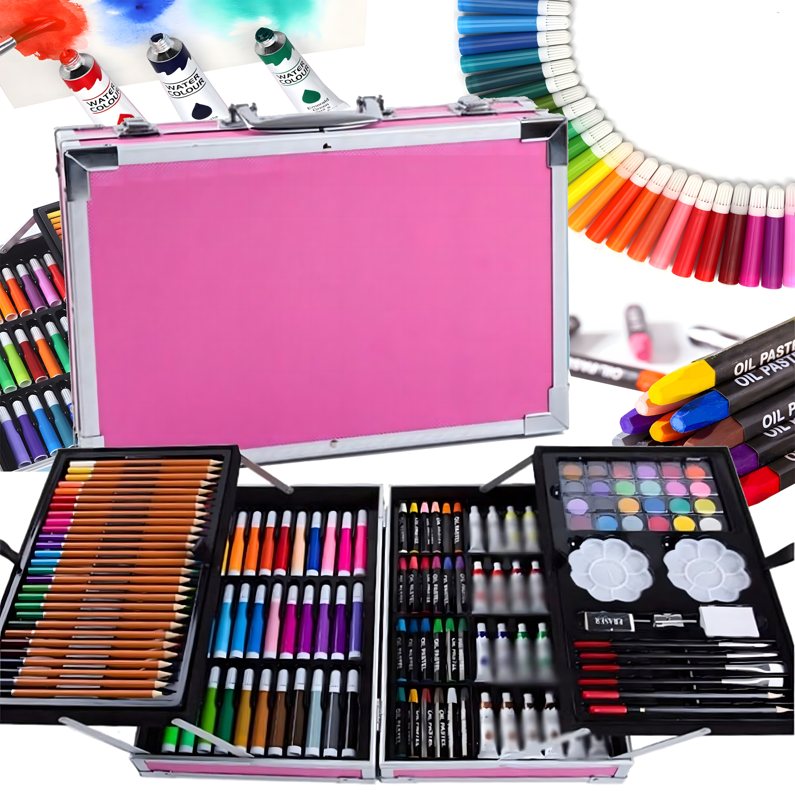 Szukasz idealnego zestawu malarskiego, który stanie się towarzyszem twórczych podróży Twojego dziecka, a może pragniesz odkryć artystę w sobie? Oto rozwiązanie, które spełni Twoje oczekiwania! Nasz kompletny zestaw artystyczny z 145 różnorodnymi elementami, wzbogacony praktyczną walizką z aluminium, to klucz do rozwijania umiejętności malarskich i odkrywania magicznego świata sztuki.