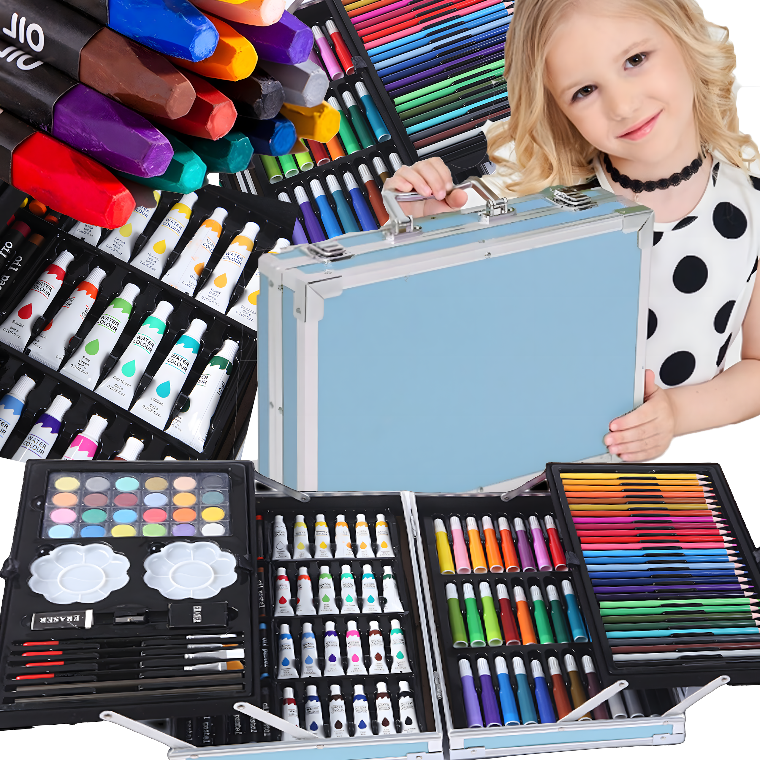 Szukasz idealnego zestawu malarskiego, który stanie się towarzyszem twórczych podróży Twojego dziecka, a może pragniesz odkryć artystę w sobie? Oto rozwiązanie, które spełni Twoje oczekiwania! Nasz kompletny zestaw artystyczny z 145 różnorodnymi elementami, wzbogacony praktyczną walizką z aluminium, to klucz do rozwijania umiejętności malarskich i odkrywania magicznego świata sztuki.